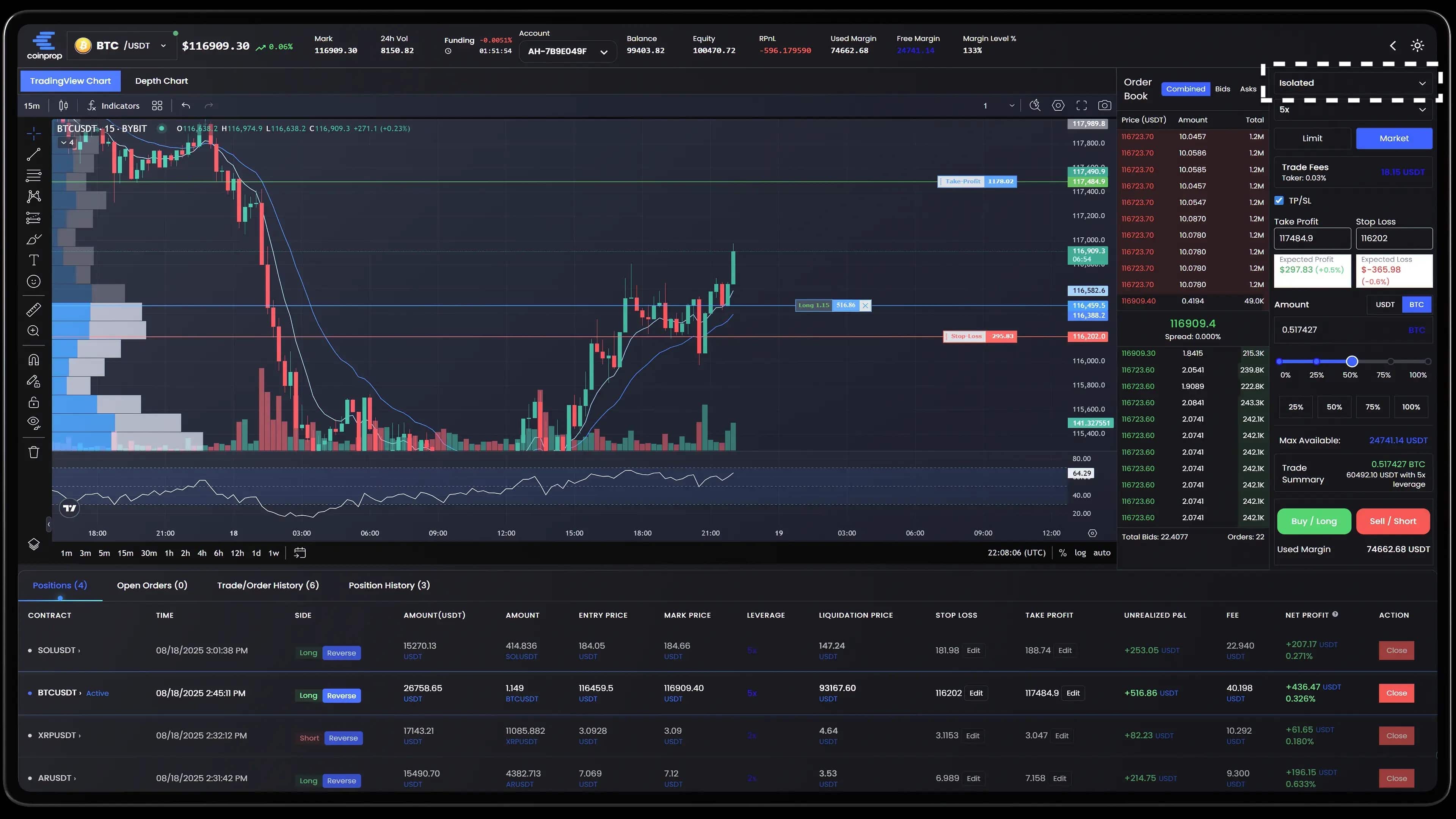 The margin is shared across all open positions in your account. This can help avoid liquidation if one position incurs losses, but it also means that all positions are at risk if the overall margin level falls below the maintenance margin requirement.